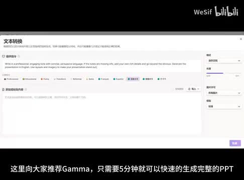 你平常做一个p p t需要多久呢?这里向大家推荐该码,只需要五分钟就可以快速的生成完整的p p t。这里新建一个文稿进行演示,修改一下提示词来获取更好的效果。