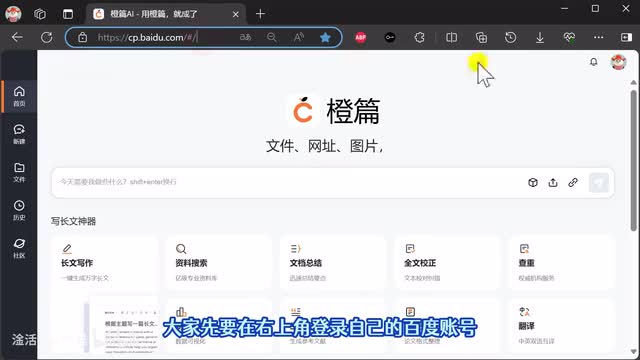 第五,文档导出或分享。那么。来看看成片生成长文档的实测效果吧。进入官网c p点百度点com。大家先要在右上角登录自己的百度账号。然后。单击长文写作,已打开插件页面。接着。单击输入主题生成按钮。
