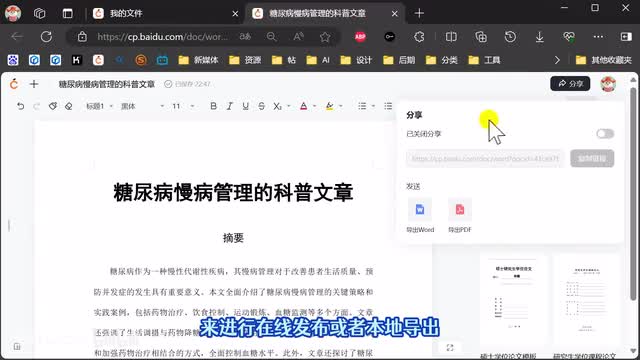 格式整理可以套用一些预设格式。例如毕业论文、学位论文等。等我们修订好内容并排版以后。可以单击右上角的分享按钮。来进行在线发布或者本地导出。在线分享的话,会在发布三天后自动关闭。本地导出目前支持word和p d f格式。可以下载到本地查看和编辑。考虑到成片刚发布不久。