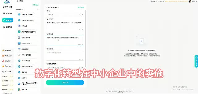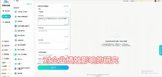 研究主题,我这里填写的是数字化转型对企业绩效影响的研究,以中小企业为例研究问题。