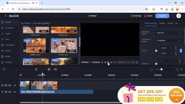 调整变速和音频内容搭配好。神秘的金字塔之名金字塔是世界上最神秘和令人着迷的建筑之一。这些巨大的三角形结构。除了基础的视频编辑功能以外,我们看看左侧栏a i alverta可以创建一个虚拟主持人二九。这个功能是搭配下面的test文本功能使用的。