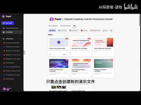 来到功能页面,这里有很多实用的p p t模板、简历模板,还可以进行数据分析、文章重写、ai绘画提示时撰写等,实在太炸裂了。如果要生成p p t,只需点击创建新的演示文件,将生成的大纲粘贴进去,根据它的提示就可以自动生成内容,常用的素材都能涵盖,其中包括了流程图、思维导图、高清配图等,还可以通过相关性搜索功能丰富和补充文件内容。