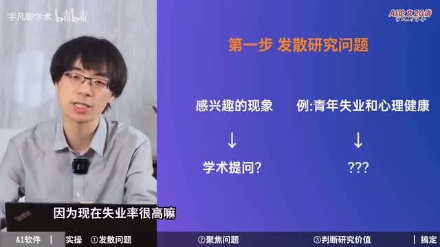 那么所以你看这里你也会看到,从医学啊、管理学甚至多个学科都在帮助你发散研究问题,对你来说是非常非常有帮助的。好,通过第一步的发散学术问题啊,我们就进入第二步,就是聚焦学术问题。因为在前一步我们看到有那么多提问的可能性。那么这一步我们来聚焦找一些比较专门的你感兴趣的问题了。好比方说哎我这里发现一个问题,其实是我特别感兴趣的,这个是青年失业和社会排斥之间的关系。