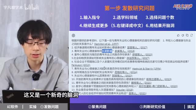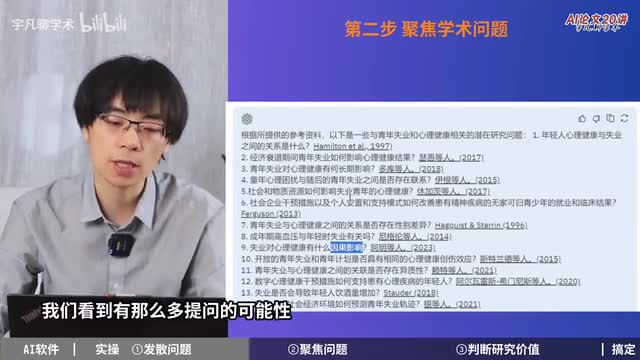 这个软件啊可以一下子给你生成一百个研究问题,每一个提问方式啊都非常学术,非常开脑洞。而且他们后面都给你附上了真实的学术参考文献。这些研究问题啊你可以拿来直接用,直接写,甚至直接发论文。大家好,我是孙宇凡。我们做研究的时候啊都会有一个困惑,就是我不知道要研究什么,或者啊你知道你对这些社会现象感兴趣,但你不知道怎么提出一个学术问题。