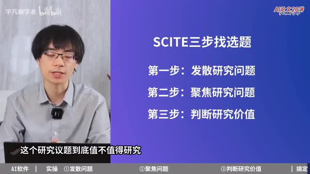 而且不仅如此,它还能够给你提供这些脑洞的文献来源,非常有依据。所以在这样情况下,它实际上就成为你学术选题的保姆级工具了。那么今天我们就来聊一聊怎么用site用三步法来帮你找到你的研究问题。简单概括,第一步啊就是发散研究问题,第二步是聚焦研究问题,第三步呢是判断你研究价值。那么我们一个个来讲,我来演示,来给你看。