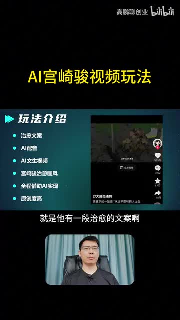 那么今天呢就给大家带来了用ai来生成这种宫崎骏画风视频的玩法。目前啊做的人呢还不多,很容易跑出播放量。那么这种视频呢它能够火啊,最主要的呢就是它有一段治愈的文案啊,把这个文案呢进行了ai配音啊,一边播放这个配音呢,一边呢播放这种动漫的画面。这种宫崎骏动漫的画面从哪找的?其实啊你用a i就可以搞定。现在还有很多文字生成视频的工具,一会儿呢我给大家详细介绍。