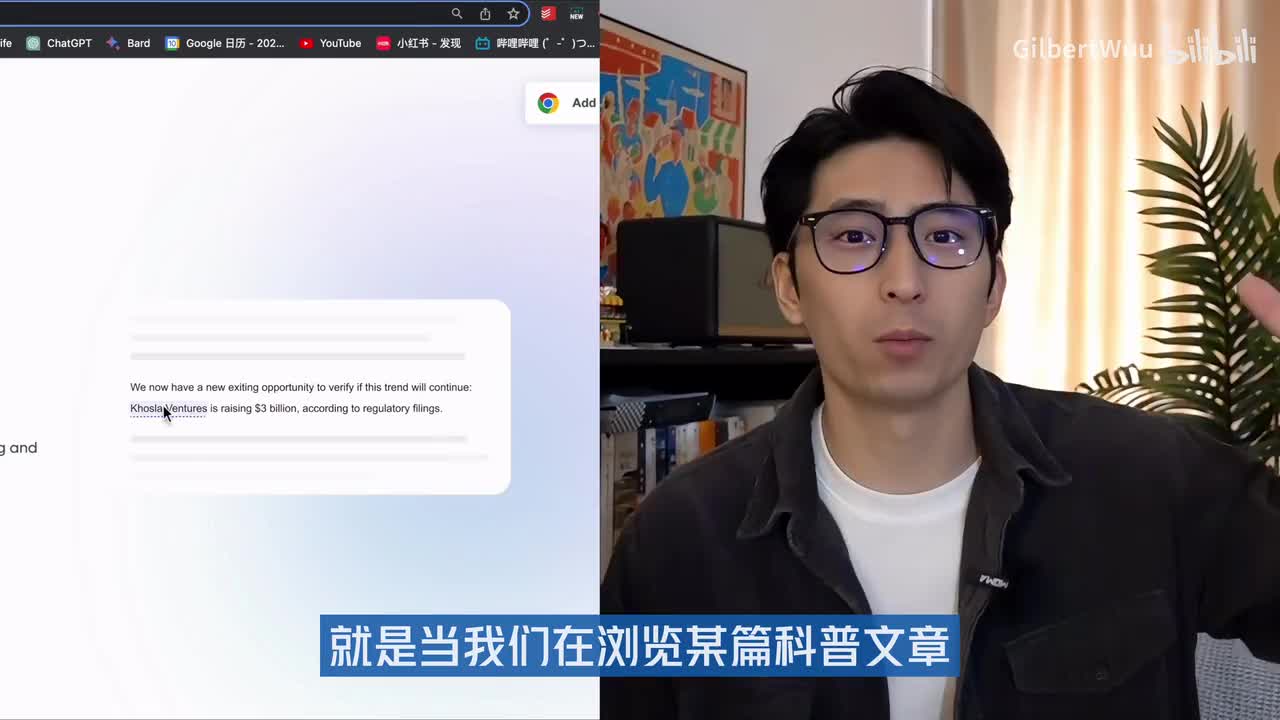 你就会发现现在的网站也会有蓝色的虚线了。就假设我在看一篇科普文章的时候,我不需要专门去查a名词是什么,b名词是什么。而是在一篇文章当中所有都了解清楚,这是最方便的。所以white one是一个非常好用的功能。第三个是通义听悟。