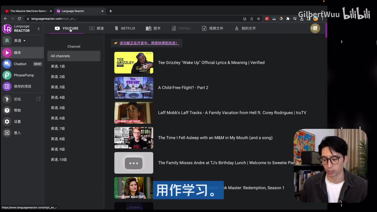 而且它的网站上还有很多保障的功能,比如说它会推荐一些适合在netflix上学习的一些电影。或者是youtube上,它会推荐一些适合学习的一些频道。还可以看到它针对英语的考级,提供了相应级别的一些参考视频用作学习。还可以把一些英语的论文啊、文章啊放到这个阅读器里面,它就会自动生成双语对照,相当于在这个页面嵌入了去g p t的功能。所以这个功能在我们学习英语的时候,它确实是一个非常实用的一个好的工具。