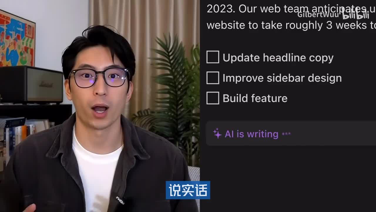 下一个是notion ai关于notion可以具体看我之前分享的几期视频,里面会有非常详细的讲解。notion确实是一个非常强大的一个生产工具。但是说到今年年初上的notion的a i功能,说实话如果我们经常使用notion来记录写稿或者等等其他文本工作的话。那它就非常香了。每次打开一个空白的页面的时候,你都会看到有一个stop writing with a i的功能。