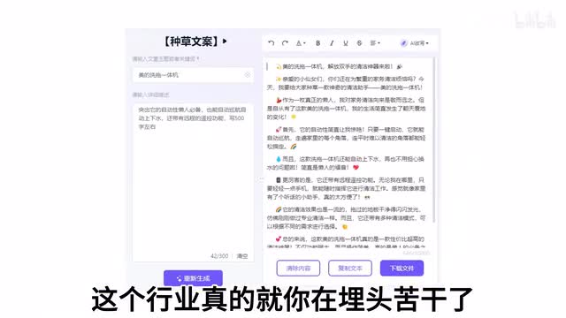 做文案编辑或者视频运营,你以为同行的文案都自己写的吗?别傻了,我们团队做了几十个账号,要是每条笔记都自己写文案,那岂不是周瑜讨荆州费力不讨好?其实根本不用自己写,直接用a i一键生成就好了。