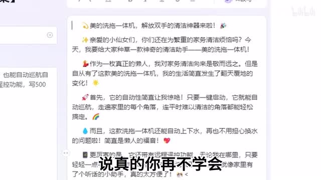 首先按照自己的行业进行选题,比如家电测评,直接在某音搜找到爆款视频下载,打开这个聪明灵犀,用视频转文字把文案提取出来,再复制到a i改写功能里进行改写。