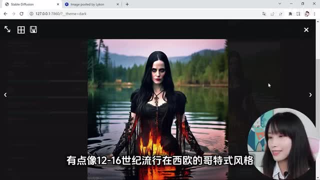 其他参数不变。点击生成,看一下效果怎么样。有点像十二到十六世纪流行在西欧的哥特式风格,像一个会黑魔法的女巫女祭司,细节很丰富。再来一个,我显卡是n卡三零六零一二g显存,玩起来没有太大问题,内存十六g可能会有一点点压力。