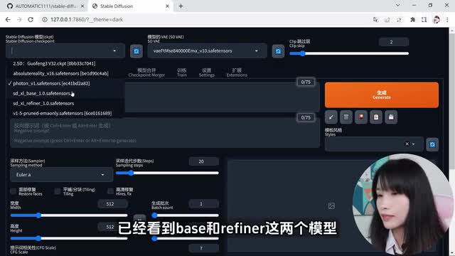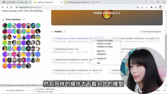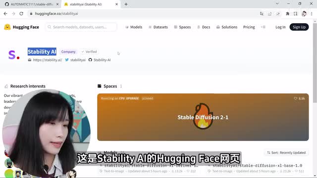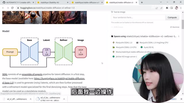 那么可以关掉它,下一步就是安装s d s l模型。我们来到这个网页相关网址,我会放在视频下方的描述栏,这是the ability t a i的hand face网页。最近发布了s d s l。我刚才说过的s d s l呢是具有双模型的,一个是base一个是refiner。