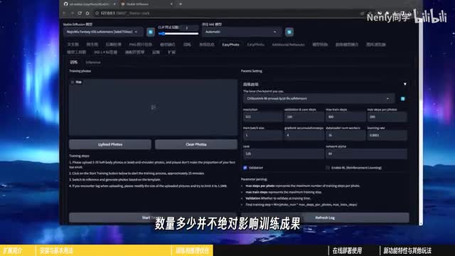 此时如果你的显存水平在十六g以上,可以考虑将批次大小增大到二到四之间,在同一批次里进行更多图像的训练,并让时间缩短到原来的二分之一到四分之一。他们之间的关系我讲明白了吗?如果你想更全面的了解easy photo里的每一个参数影响的因素,在这里我也为你附上一张参数含义的表格。这些和罗尔训练相关的参数还是挺有趣的。如果你期待一些关于他们的更为深入的讲解,可以在弹幕里敲个六下单预定一下。而比起参数,我认为更重要的是你输入给easy photo的照片,也就是我们常说的训练样本。首先,数量多少并不绝对影响训练成果。在一开始上传照片时,并不是说你塞三四十张进去,效果就一定会比十张要更好,相反,过多的样本有时候还会干扰ai的学习,让loa难以稳定发挥,相比之下,样本质量才是最重要的,什么样的照片才是好的样本呢?第一,人的脸在画面中的占比应该尽可能大,至少是半身照。自拍照尽量不要挑这种人很小的游客照,也不要挑这种脸不完整的自拍照。第二,多张照片里最好包括不同角度表情的人像,如果人物戴眼镜,那不戴眼镜的也要有其他一些基本的要求。