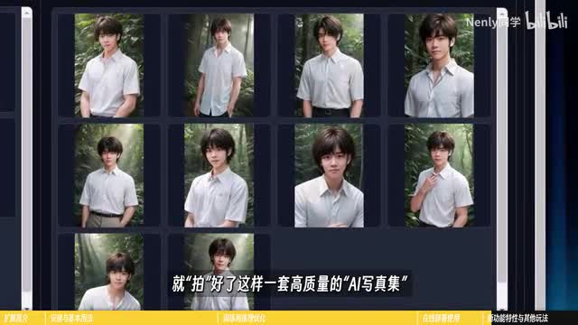 除了e z photo这种简易的loa训练以外,d s w还支持完整部署web u i以及loa训练。u i无论是像云端炼单还是在线速度作画,都可以通过它轻松实现部署。目前easy photo的各项功能还在非常快速的迭代更新。上周他就加入了一个图像批处理的功能,切换到推理界面的这个批量上传标签,你可以一次性选中多张照片上传,按上面的方式设置好参数模型,就可以让他批量产出同一个主人的一系列照片,只需要不到十分钟的时间,就拍好了这样一套高质量的ai写真集。真的非常方便了。同时它还支持了多人写真的面部融合,导入有多张人脸的照片后,在下方定义面部数量,再给每个人脸选择对应的主人,就可以做出像这样的多人合照了。很多s d用的不多的朋友,可能在做底图这一步上就会碰到困难。但也不用担心,本着让照片变得越来越easy的思路,它在这个月还加入了一个新的功能,就是基于s d excel实现的底图快捷生成。这个功能彻底打通了从生成到产出的整个完整流程。