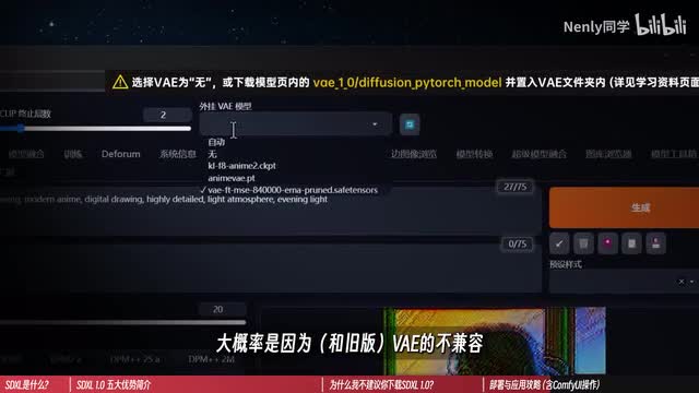 但需要说明的是因为s d excel更为强大,但是它的配置需求也相应有所上升。官方推荐在拥有八g以上显存的显卡上运行,比起原来最低六g即可畅玩的门槛又高了一个台阶。要用excel出图的方式和其他大模型没有任何不同,但在写提示词的时候,可以尝试着用刚刚我提到过的更为简单的自然语言进行描述,并利用我列举的一系列风格提示词,引导他给出不同画风的答案。有一个小提醒,在上传图片时如果碰到类似这样的报错,大概率是因为v a e的不兼容,可以把出头v a e设置为五就可以规避类似问题了。在调用final的时候,一种选择就是我前面说的,在纹身图以后再也调用一次图生图来进行重绘。而如果你想在web u i里搭建一个完整的操作链路,就一定要使用到config u i这个更为专业的工具。config u i可以被独立部署,也可以被离线到许多软件应用中使用。如果你是一位web u i的使用者,可以通过这样一个conf u i的扩展,直接在s d里使用它,输入conf u i就可以找到。