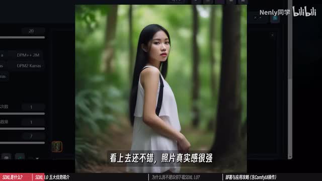 但s d x l支持以非常少的提示词来进行描述,并且不需要在质量方面额外验证。输入一个在森林里漫步的女孩,指定使用真实摄影照片风格。除此之外不加任何质量提示词,也不加任何负面提示词。excel生成的结果是这样的,看上去还不错,照片真实感很强。为了对比,我特意找来了很早以前的一点四版本的stable fusion模型。生成的结果吗?是这样的。而即便是一些经过微调的老版本模型,在比较低的提示词水平上表现很多时候也是不尽人意的。这样一对比你就能看出它的优越之处了。