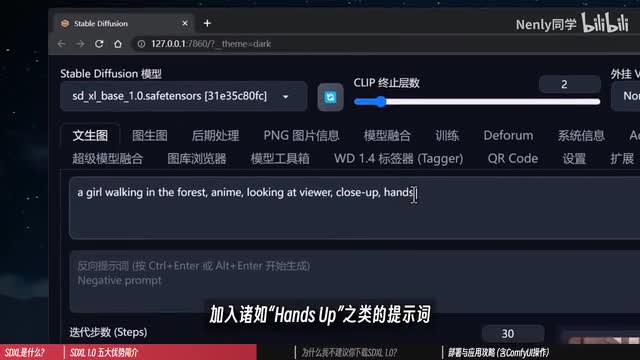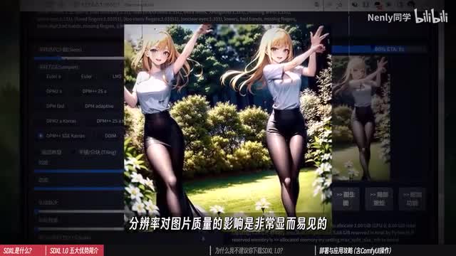 第二点则是更大更高清的分辨率。在之前的版本中,sd基础模型使用的训练样本尺寸大多为五百一十二像素或七百六十八像素的正方形图片。这导致我们在使用较大的分辨率作图时,a i会误以为是在生成多张图片,从而让画面中出现多人多头的现象。分辨率对图片质量的影响是非常显而易见的。如果你做的图只有五百一十二像素,那细节再这么丰满,看上去也会非常粗糙。但x l的基础训练样本扩大到了一千零二十四像素,这意味着它可以直出更大尺寸的图片。经过我的测试和对比,稳定性是更高的。结合前面所说的第一点,也不容易出现肢体错乱,画面混杂的现象。