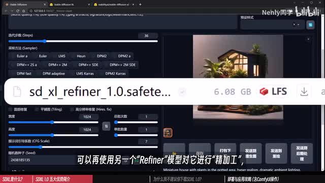 换在以前要实现这个精度的高分辨率输出,必须依赖高清修复或者cut decision一类专为高清升级打造的扩展才能做到。说到精度来聊聊第三点,单纯使用xl生成的图片比起以前会具有更多细节,这一点要归功于它创新性的refiner结构。这次开源出来的大模型其实包含了两个部分,一个是基础模型,另一个被叫做优化器,均为safe tensor格式,各占七g左右。base model是基础模型,平时出图作画主要是使用它,在你得到了一个想要的结果以后,可以再使用另一个refiner模型对它进行精加工,使细节水平得到飞跃。在web u i里要充分利用这个refiner,你可以在完成一次生成以后,将结果输入进土生图里重考一遍,然后把模型切换为这个refiner,重回幅度建议在零点五以下,其他参数保持完全一致。以及生成细节是不是就变得更加丰满了呢?如果你想深究refiner的算法原理,可以查阅官方刊发的论文。它有点类似于我们在用a detail的插件对面部局部重绘时一样,会识别出那些需要细节的部分,额外进行加噪续造来获得更高清的结果。其实呢这个图山图再跑一次的操作算是个土方法。