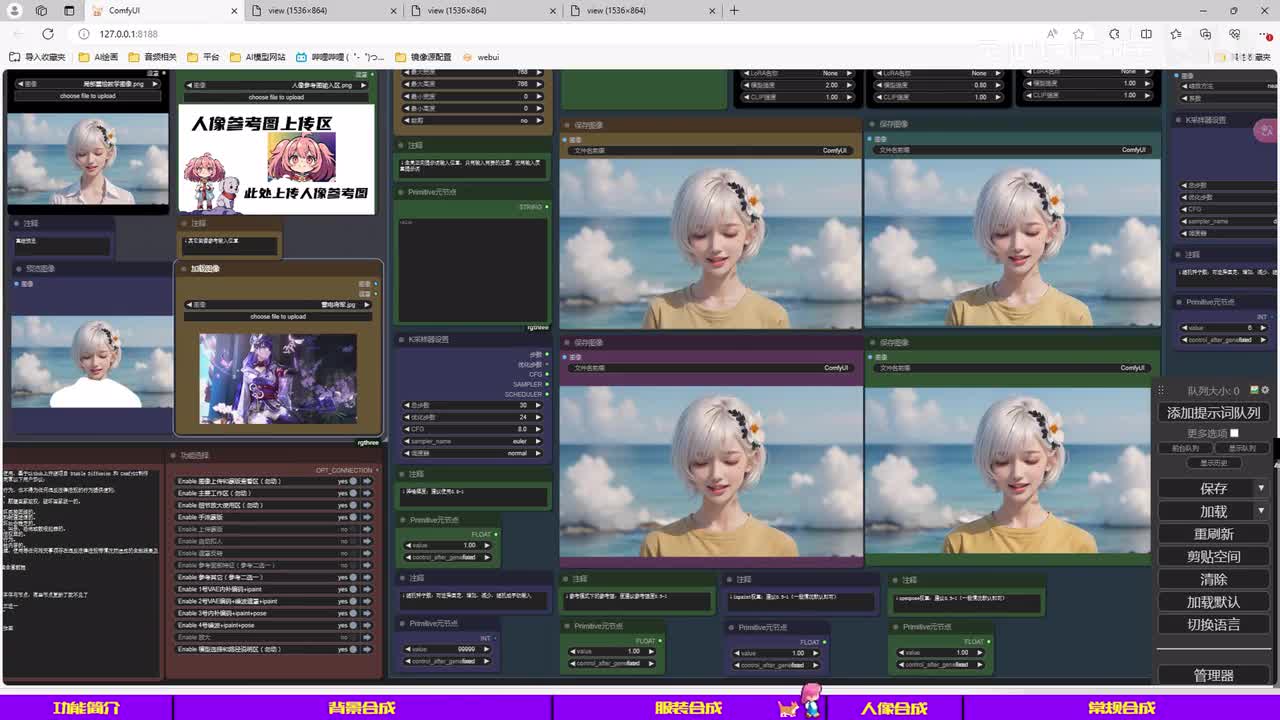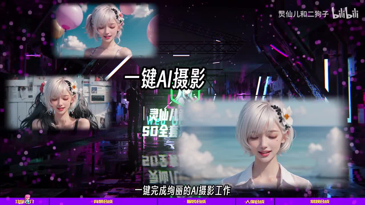 如果现在有这样一套工作流,直接上传一张原图,加上一张参考图,就可以一键进行背景更换,或者直接一键合成一对天使的翅膀,一键穿上指定的服装,无论是三次元还是二次元。一键合成人物,一键完成绚丽的a i摄影工作,这样的工具你需要吗?而今天它来了a i摄影小助手,一点零版全网独家首发。二狗子快来带我们看一下它的使用方式吧。首先打开我们的a i摄影小助手工作流。