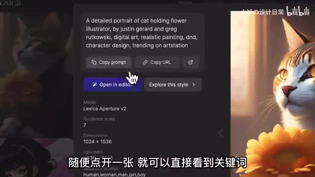 关键词网站类似卡有超多风格的图片可以参考,随便点开一张就可以直接看到关键词,进行一键复制,当然你也可以找到更多同样风格的图片慢慢挑选的。