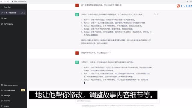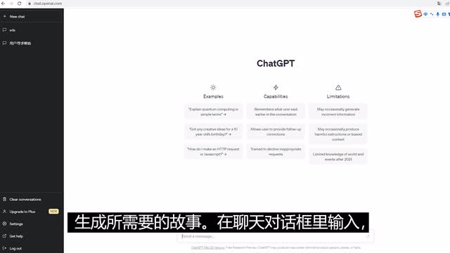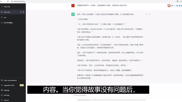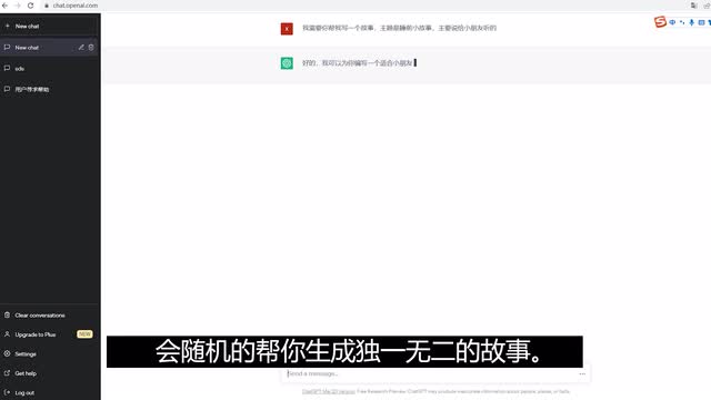 首先我们打开check。让它为我们生成所需要的故事,在聊天对话框里输入。我需要你帮我写一个故事。
