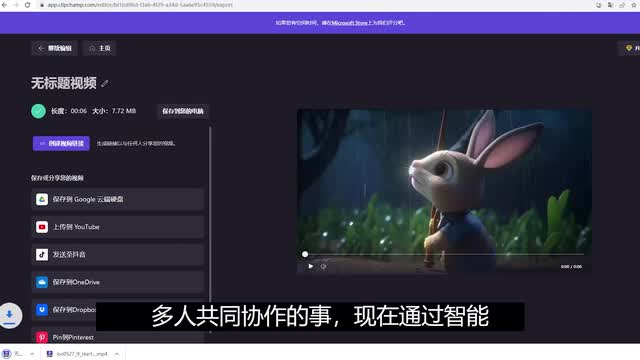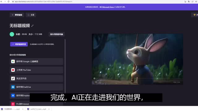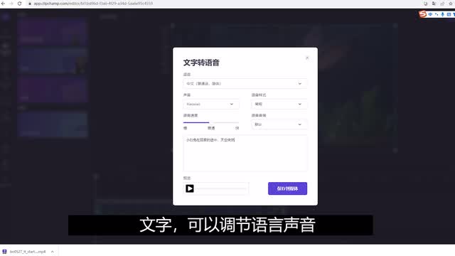 打开clip champ网站,把保存好的视频拖入,在录像和创建里选择文字转语音,输入你所要描述的文字,可以调节语言、声音、速度等。保存到媒体后,拖入时间滑块,点开字幕,可以把自动字幕匹配。打开完成后点击导出视频。