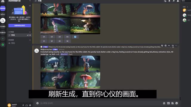 打开mid journey输入imagine空格粘贴英文描述。这里我用了迪士尼的风格,mid journey会根据提示与生成你所描述的画面,可以不断刷新生成,直到你心仪的画面。打开leo pix网站,把生成的图片拖入左边一栏,有参数可以调整动态细节,这里点击分享,保存为视频。