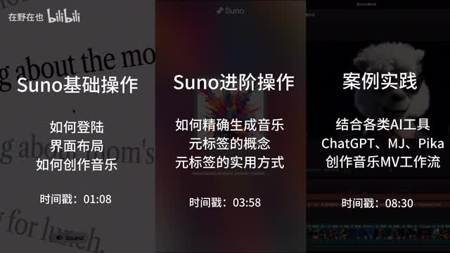 是爱。从奉献的缺陷。向向上。写上自我介绍,世界。ok我们来总结一下本期视频的内容。首先我们介绍了su n o的基础操作和进阶操作,知道了如何通过原标签来实现更精准的音乐控制。然后通过结合h h p t m ji p卡等软件,详细演示了如何制作音乐m v的完整工作流程。如果你对此感兴趣,不妨实践一下。