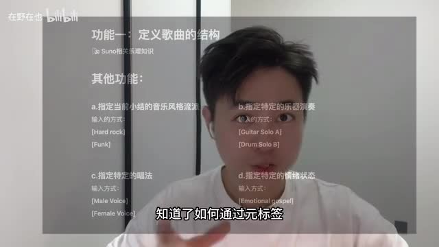 我们来展开聊一聊原标签的作用。举个例子,原标签的典型功能就是定义歌曲的结构。像我们刚刚看到的verse curse分别代表歌曲的主歌和副歌部分。通常一首完整的歌曲都会包括前奏、主歌、前副歌、副歌桥段、尾奏等部分,定义好了不同的小节,歌曲的演奏方式自然会有所不同。比如副歌部分通常是歌曲的高潮部分,往往会更加响亮饱满,声音的层次也会更加丰富。那除了定义歌曲结构之外,原标签还有好几个非常实用的功能。比如说它可以告诉a i我们想要这一小节的音乐风格是什么样子的,是摇滚还是爵士,而且它还可以指定我们想要什么样的乐器来演奏这一小节,比如钢琴、吉他。第三,如果有特别的唱法需求,比如说这一段是要用男声唱,或者是用女生唱,或者想要有什么特别的演唱风格,原标签也能搞定。