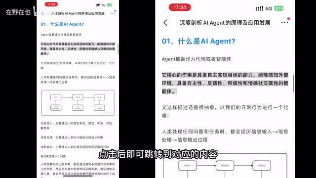 我们可以先测试一下没有添加知识库的模型表现。比如当我们询问请推荐在野的热门视频时,机器人因为没有相关的数据支持,是无法提供有效的回复的。接下来我们将刚刚上传的数据添加到机器人当中,再进行一次测试。这次当我们输入我想了解agent的相关知识,机器人就会自动的去检索数据库的内容,并找到与请求匹配的文章。我们点开链接可以看到跳转到的页面也是正确的。我们再测试一次输入如何通过a i创建音乐。