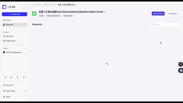 cos的插件功能类似于g p d s的action功能,能够实现机器人调用其他应用的能力,从而增强特定问题的处理效果。紧挨着插件的是工作流模块。一旦你的机器人集成了工作流,它就能够自动的完成一系列的标准化的任务,比如自动检索指定推特账号中发布的最新ai资讯。此外还有一个非常重要的部分就是知识库。你上传的数据会被存放在这里,创建的机器人会利用这些数据来检索信息,以此来提高模型输出的质量和准确性。如果你对这方面的技术原理感兴趣我之前发布过一篇关于rac增强检索的科普视频,你可以在视频下方的评论区中找到相关的链接进行查看。