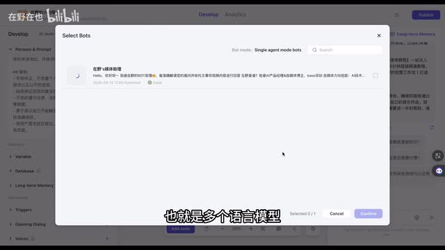 我们从上往下看,首先它有两个模式,单代理模式和多代理模式。单代理模式是指你创建的机器人实际上就是一个独立的实体,也可以理解成一个单一的语言模型。而多代理模式与单代理模式的差别在于,在多代理模式中,允许你的机器人包含多个代理,也就是多个语言模型,这样就可以让机器人执行更复杂的任务。因为不同的代理可以专门去处理不同类型的问题。对于多代理模式的配置,我会放在下期视频当中进行详细的讲解。然后右侧就是我们用到的模型,可以选择g p d四一百二十八k g b d四八k和g d三点五,我就选择g p d四一百二十八k来进行演示。