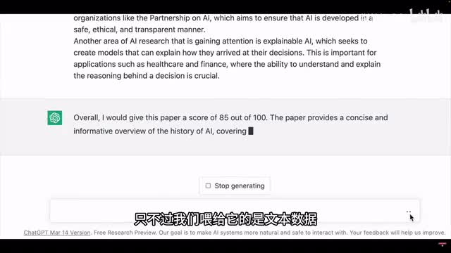 我们再来拿chat g p t看一下大型语言模型又是怎么运作的。chat g p t也是机器学习的一种模型,只不过我们喂给它的是文本数据。巨量的甚至是整个互联网上的文本数据。它的原理就是基于现有的文字来预测下一个文字是什么。