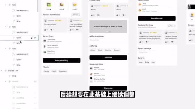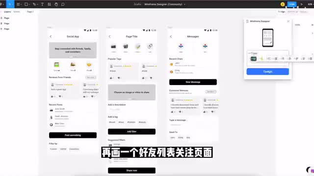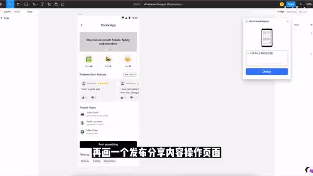 最后再画一个个人资料页面,这个页面可以展示用户的个人资料和信息,包括头像、用户名、简介等等。最后让我们看一下整体效果,生成的内容是英文的,不过没有关系,我们可以使用另一个翻译插件,把文字内容翻译成中文。从产出效率上,a i效率非常高,原来一天的原型工作量,现在不到一个小时就可以完成。毫不夸张的说,工作效率直接提升十倍。