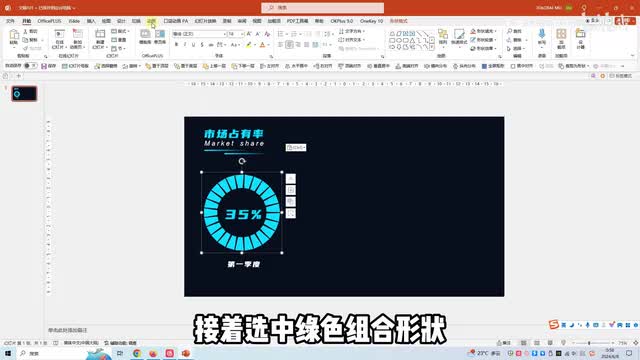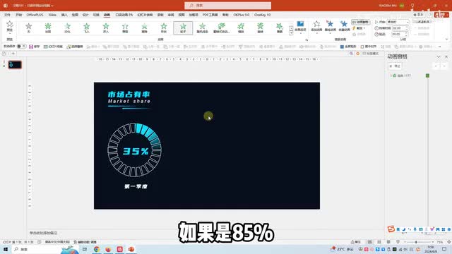 再把两个组合对齐,再放上数据和文字,接着选中绿色组合形状,点击动画,给它添加一个轮子动画,打开动画的效果选项。