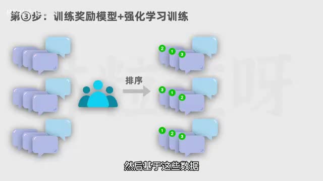 此时的模型除了续写文本之外,也会具备更好的对话能力。第三步,用问题和多个对应回答的数据,让人类标注员对回答进行质量排序,然后基于这些数据训练出一个能对回答进行评分预测的奖励模型。接下来让第二步得到的模型对问题生成回答,用奖励模型给回答进行评分。