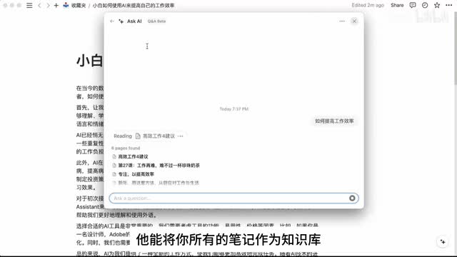 这些对他来说都是轻而易举的事。这还不是最牛的,最牛的是它能将你所有的笔记作为知识库。当你询问他某个问题时,他能根据已有的笔记内容来进行回答。