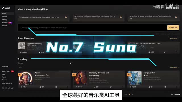当然,使用它需要一些费用,如果你从事设计方面的工作,或工作中需要用到大量图片,那么它的投入产出比会非常高。第七名,suna, 全球最好的音乐类ai工具,在国内用微软账户就可以直接登录使用。你只需要输入一段歌词,甚至让他直接帮你写一首歌,然后设定好曲风,它就能瞬间完成谱曲,并把它演唱出来,水准完爆各种所谓的网络神曲。