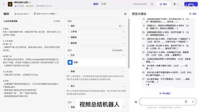 可以说,它就是目前你在国内能用到的最强ai助理第一名。这是字节跳动推出的一款ai开发平台,你能在上面免费调用国内几乎所有知名的大模型,例如通义千问、质朴轻言,包括我们前面提到的kimi和豆包等等,以及各种应用插件,然后用他们的能力,你可以自定义出各种机器人,例如标题党机器人、视频总结机器人、sword分析机器人等等,甚至你还能让多个机器人在一个工作流里相互配合,来帮你完成各种任务,当然平台上也有很多其他人开发好的机器人和工作流,你可以直接使用。如果你还会一些魔法,那么用它的海外版全球最强的大模型g p t四o和gma一点五和各种海外知名插件也都能随时替你拆解。