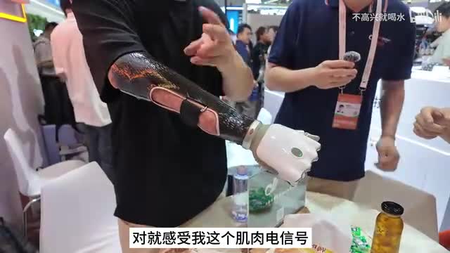 比如说握手、捏,然后开门、按门铃,包括你玩手机,我们这个是触屏的都可以用。这是通过什么去控制的?呃,就是我们通过生物电去控制的。就只要想就可以了。对,因为我们是这种无创的,就相当于是呃你的这个肢体如果是少了这一部分,你直接插上之后,就是通过我们的接受腔,然后安装好之后,经过一定短时间的训练就可以完成你大脑想的动作。直接通过我们接电信号,然后就可以握手司机带药器。对,您可以待会儿就是可以感受一下,可以的。我力度也可以稍微控制,我再捏重一点也可以。