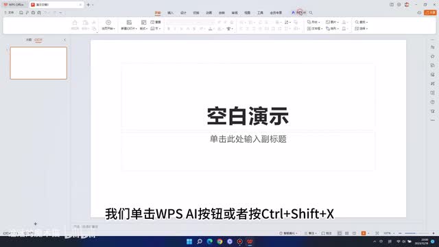 且我们手上没有文案。只有一个主题。这种情况比较简单。我们单击w p s a i按钮,或者按control加shift加x打开w p s a i的悬浮菜单。