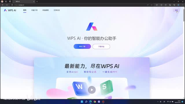 所以如果我们需要使用这个自动制作p p t的功能。必须先获得内测资格,当然这很简单。首先打开网址。a i w p s c n. 然后在右上角登录账号。