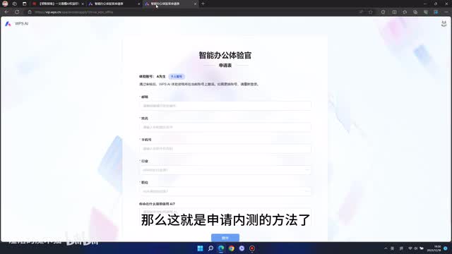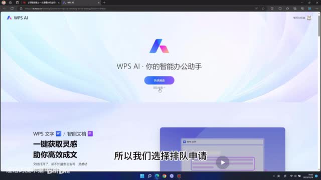 然后。我可以从个人用户或者是w p s a i体验官下面的点此领取进入。如果你选择的是个人用户下的通道,因为快速通道是给v i p的,所以我们选择排队申请,然后在弹出的网页中填写资料完毕后提交即可,一般很快会通过审核。如果你选择的是w p s a i体验官下的通道。
