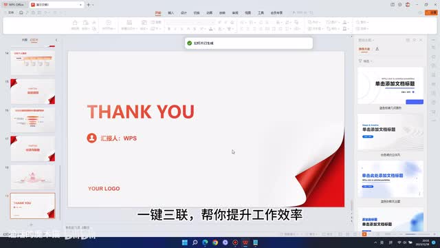 等待w p s a i利用你提供的文案制作p p t即可。怎么样?是不是感觉以后都不要亲自做p p t了,一键三连帮你提升工作效率,节省大量时间。好了,今天的内容大家都学会了吗?不要太好用哦。