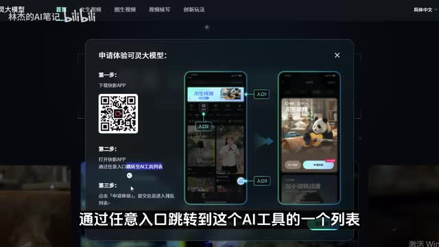 到这一步呢,我们就可以依据他给出我们的步骤进行一个申请了。比如说第一步是需要我们先下载这个快影a p p,手机呢直接扫码下载,下载完之后再打开快影a p p,通过任意入口跳转到这个a i工具的一个列表。第三步就是点击申请体验,然后提交信息进入排队列表中。并且这里还提示,当我们提交申请后,下滑到平台的底部就可以扫码加入可伶官方用户群。如果填写了群公告问卷之后呢,还可以加速通过。