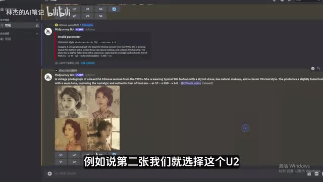 好的,现在这个美女图片啊就已经生成,购买了不满意也是同样的去刷新。如果我们打开这个照片有一张满意的话呢。直接让mid journey发送大图给我们的,例如说第二张。我们就选择这个u二好了,那个jnet已经生成大图了。然后我们点击这里,在浏览器中打开,点击鼠标右键将图片另存为到我们的桌面上面,点击保存。