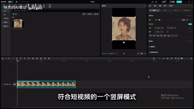 接着将可零生成的a i视频导入到剪映中。我们点击这里的导入,然后将视频导入进来o k接着将视频拖入到视频轨道中,我们调整一下整个画面的比例,现在它是一比一的,我们调整为九比十六,符合短视频的一个竖屏模式。然后把视频呢往下面拖,接着上面导入我们的原来的照片。就是这张照片了。同样的投入到视频轨道中,然后放到上面这部分来接着调整一下大小和比例。