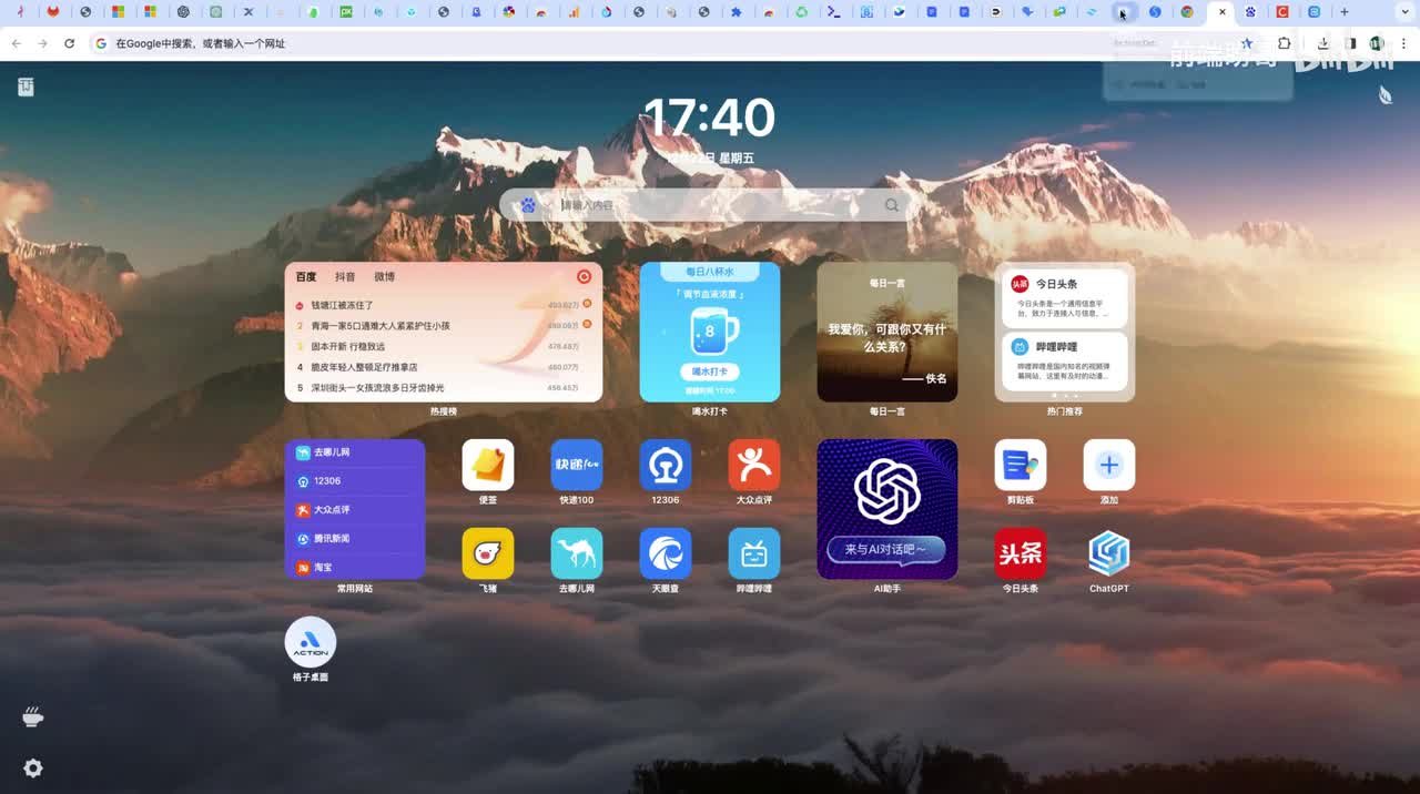 跳到了百度对不对?但是你看到了跳到百度以后,左边它是百度搜索的默认的结果页。那你要在里边去找一个你最终的答案,那是不是一个一个点开找很麻烦,效率很低。那么大家看到了当你安装active tab以后啊,在你的百度搜索页的右上方这个顶部会有这么一个工具条啊,这里可以去设置啊。