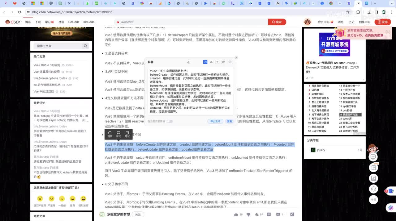 比如说我们随便打开这个网站吧,哎我们打开这个网站对吧?我们现在在阅读这个网站,在我们的阅读过程当中啊,我们发现了一个啊不太理解的一个知识。比如说我们觉得这一段我理解不了,我想查询一下资料,对吧?那怎么可以解决呢?你不用把它复制,找一个工具去粘贴,你只需要看选择这段话,鼠标松开,哎,你发现你的鼠标的下方会出现一个工具条,在工具条上有一个图像这个解释。